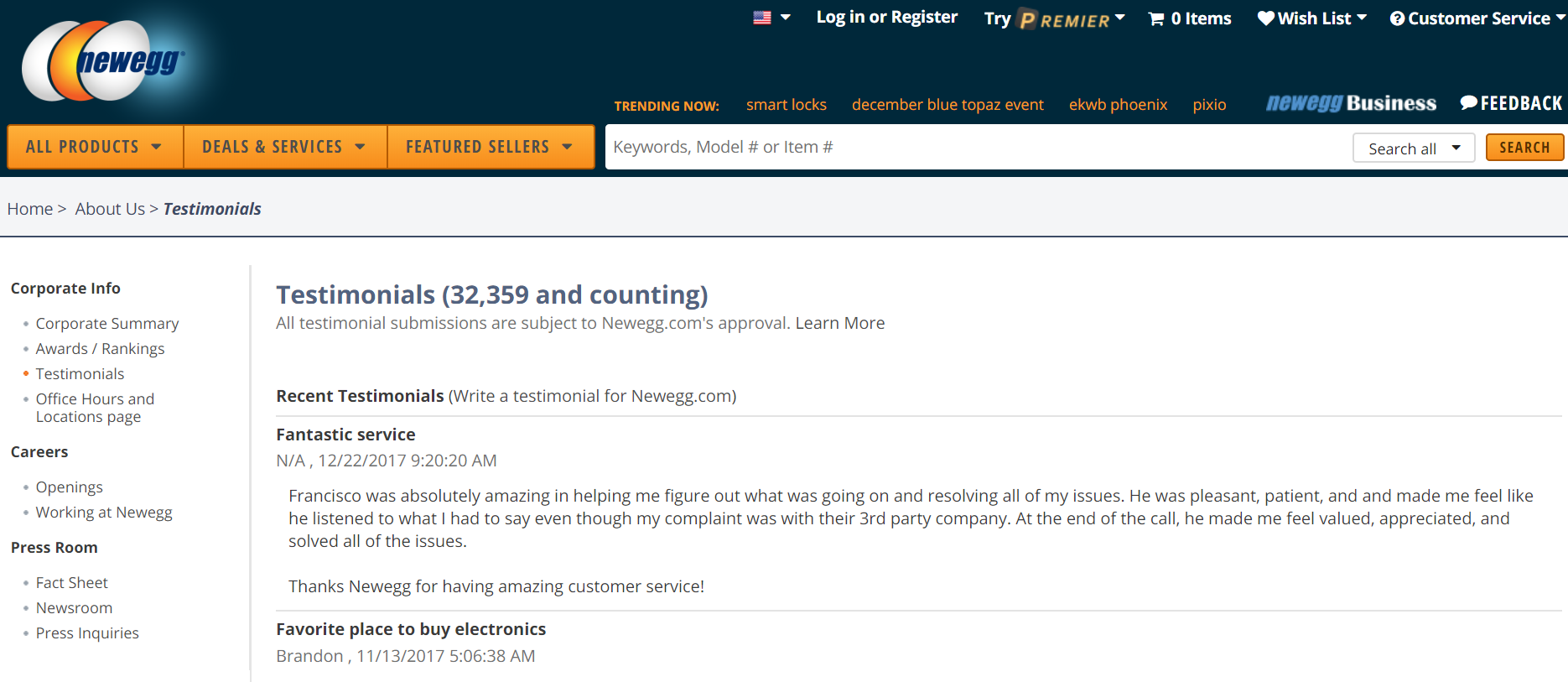 例如: newegg.com就顯示有多少的客戶對網站的評價