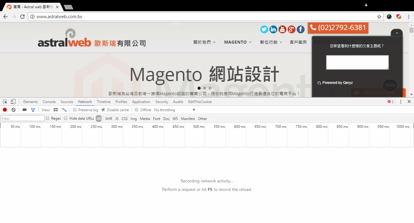 若使用Google Chrome開發者工具,在看你想要測試的網頁時,按下F12,注意頁籤選擇"Network":
