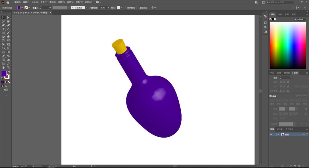 3.我們繪製一個酒瓶作為範例,我們只需要繪製半邊即可,先繪製瓶塞並調整顏色