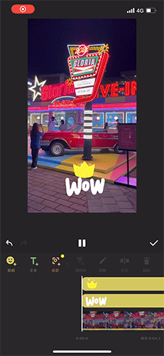 8.選擇好後,可以調整貼紙大小與位置,並在時間軸調整出現的時間與長度