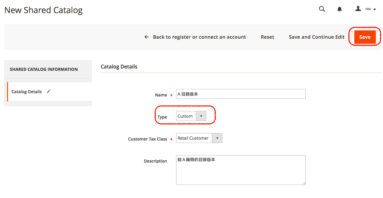 假設,現在要為A企業客戶設定一個專屬的商品目錄,且該目錄的價格也是A企業客戶專屬的價格折扣,可以依照下列步驟來建立: