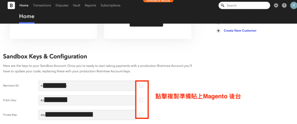 - Sandbox Public Key 貼上剛剛在Braintree複製的Public Key
