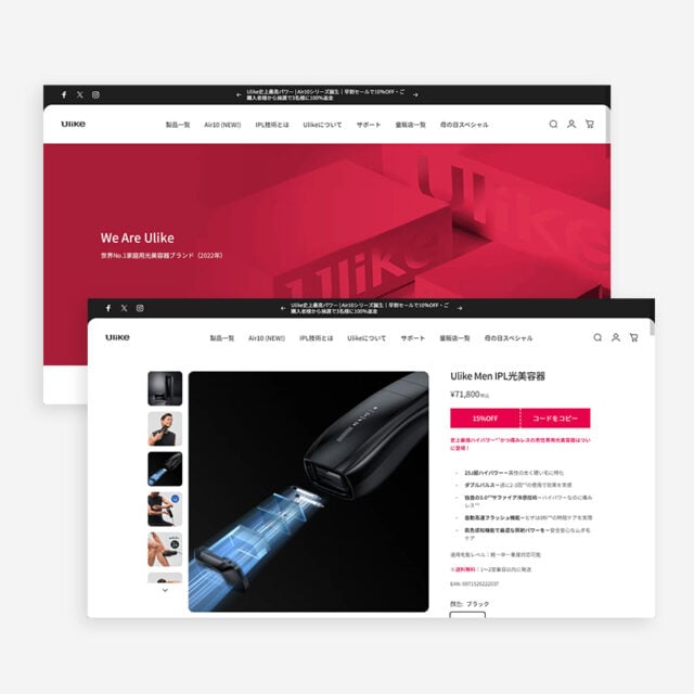 Astral Web2025-11-05T07:04:38+08:00 分享此案例 Facebook Twitter LinkedIn 0 2025-09-21 Shopify 專案介紹 Ulike 致力於開發家用美容設備,並銷售居家除毛儀產品及美容產品,是家用美容設備的先驅。提供既安全又舒適有效的除毛產品,尤其居家除毛儀器主打冷卻技術,提供無痛舒適的護理,現在每個人都可以在家中輕鬆享受沙龍級品質護理囉! 案例說明 客戶名稱: Ulike 服務內容: 架構規劃客製開發顧問諮詢 網站系統: Shopify 案例 URL: https://jp.ulike.com/